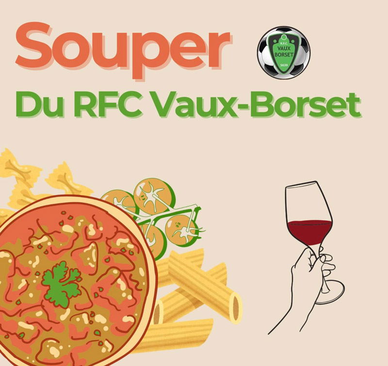 Le samedi 8 novembre, dès 18h00, le RFC Vaux-Borset organise dans ses installations un souper pâtes !